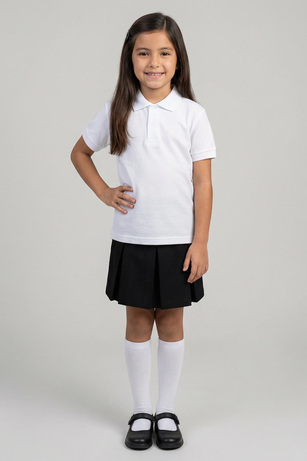 El tejido clásico Piqué asegura que el aire fluya a través de la tela, manteniéndola fresca y cómoda durante toda la jornada 🌬️. Sus puños tejidos y botonadura fina le dan ese toque clásico de escuela o colegio que exige el reglamento, pero con la comodidad que ella necesita para estudiar y jugar 🎨.