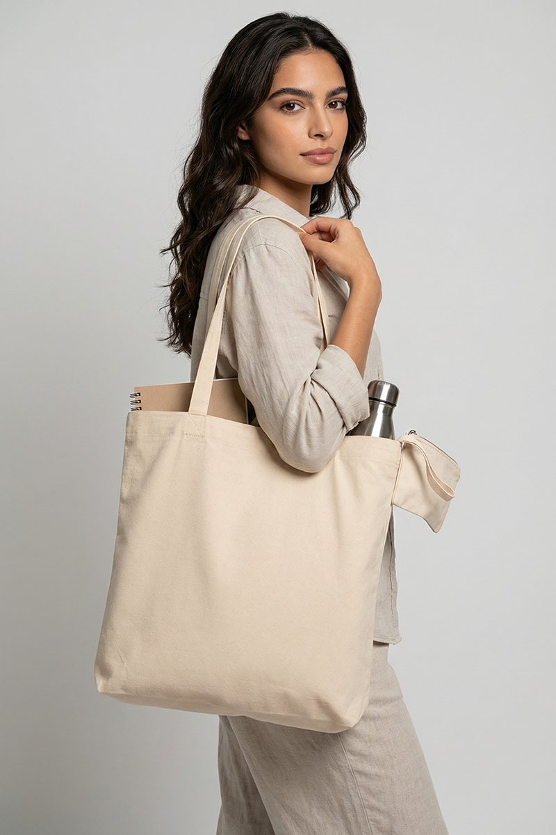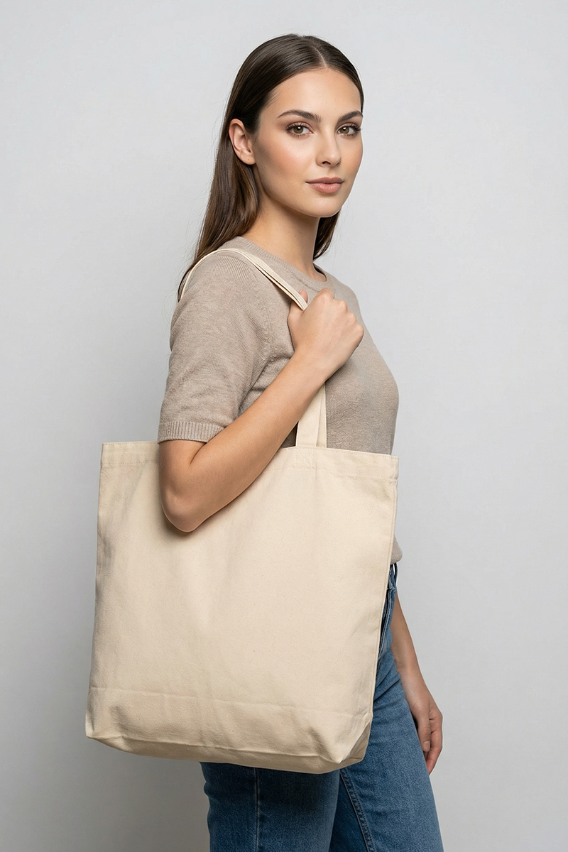 Con sus asas largas y reforzadas, llevarla al hombro es súper cómodo todo el día ✨. Además, su superficie plana y porosa natural la convierte en el “lienzo en blanco” perfecto para estampar el logo de tu emprendimiento con serigrafía, bordado o DTF 🎨. ¡Haz que tu marca camine por toda la ciudad de forma ecológica y duradera! 🚶♀️